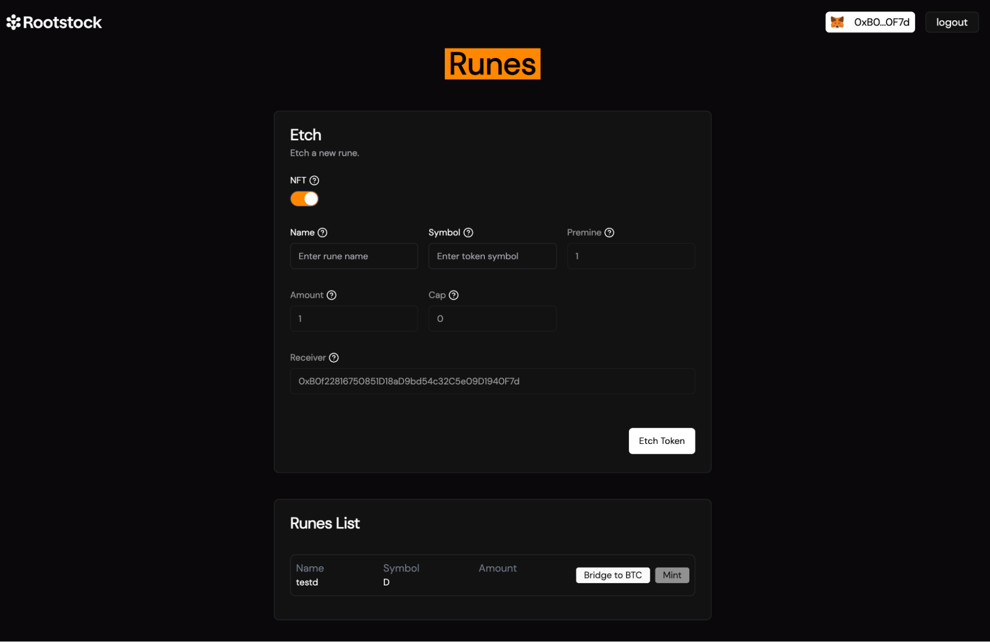 Mint Runes on Rootstock